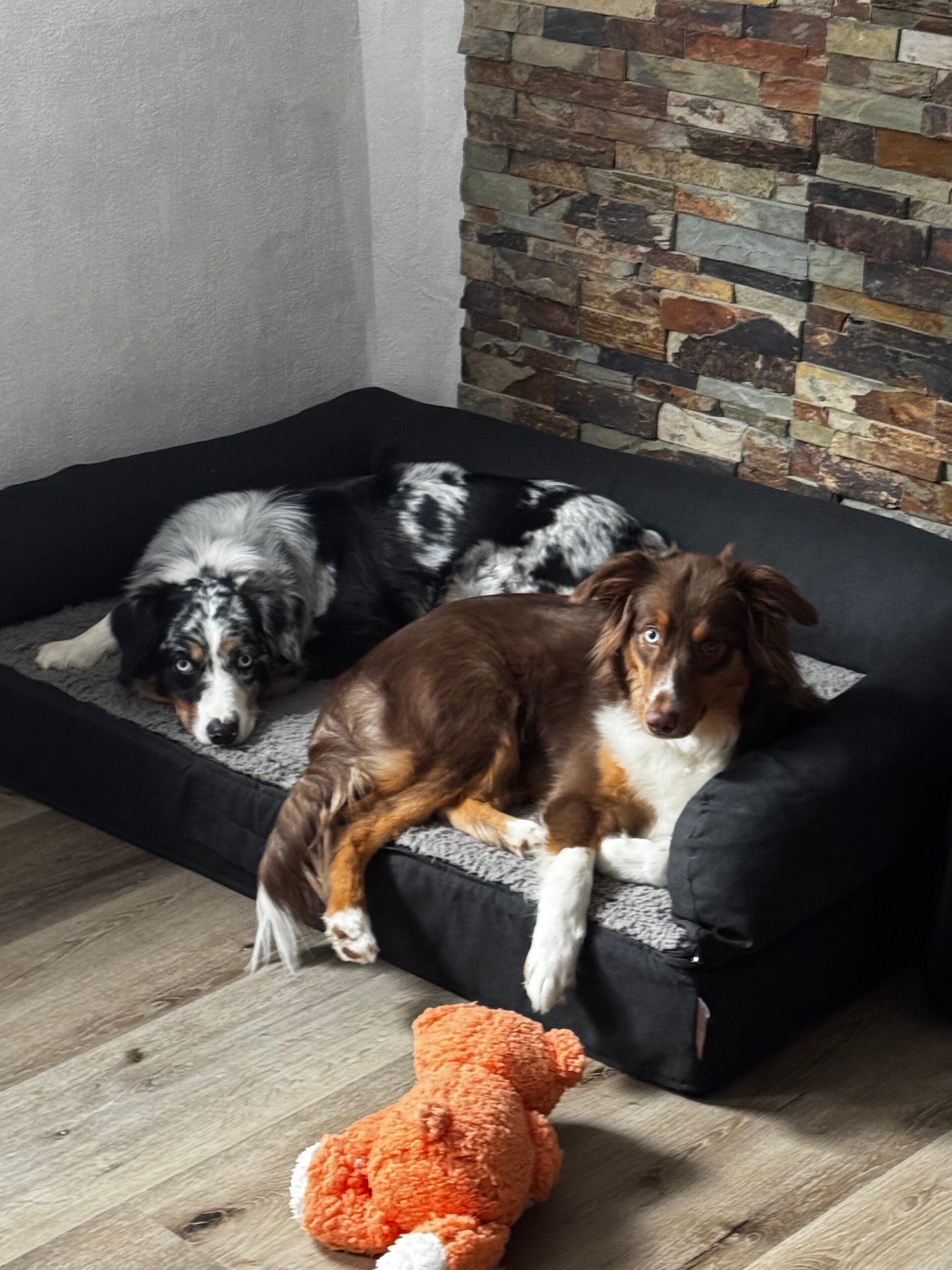 Wir legen größten Wert auf gesunde, wesensstarke und familienfreundliche Australian Shepherds. Unsere Hunde wachsen mitten in unserer Familie auf, sind eng in den Alltag integriert und werden von Anfang an liebevoll sozialisiert. So lernen die Welpen verschiedenste Umweltreize, Menschen und Alltagssituationen kennen – So schaffen wir die beste Grundlage für souveräne, ausgeglichene und freundliche Familienhunde.